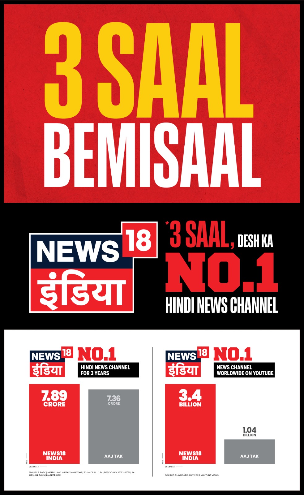 ABP News recorded an astounding 178 million video views in the Hindi news category. The channel outpaced its closest competitors, including News18 India and TimesNow Navbharat, by an impressive margin of 35 million views, reaffirming its leadership in the digital news space.